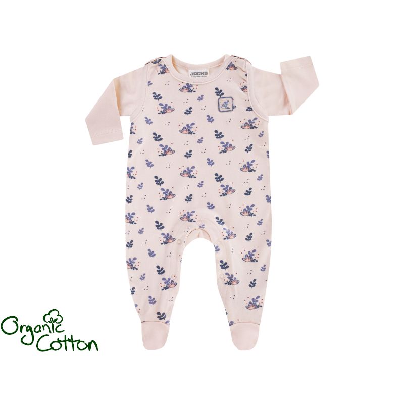- Комплектът от органичен памук се състои от блуза с дълъг ръкав и гащеризон-ританки.