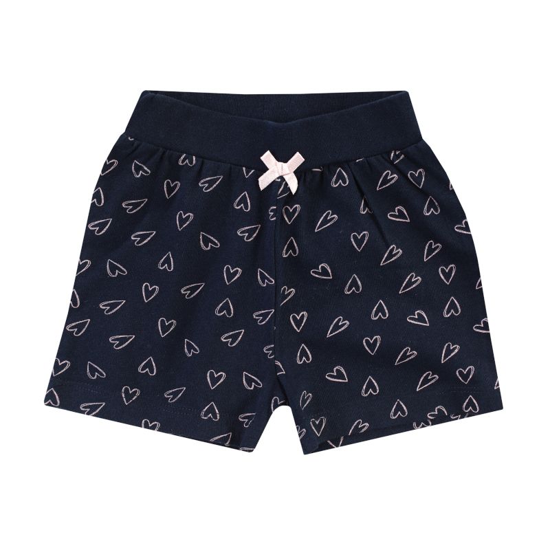 - Къс панталон в тъмно син цвят- нави, е ефектен принт на сърца.
