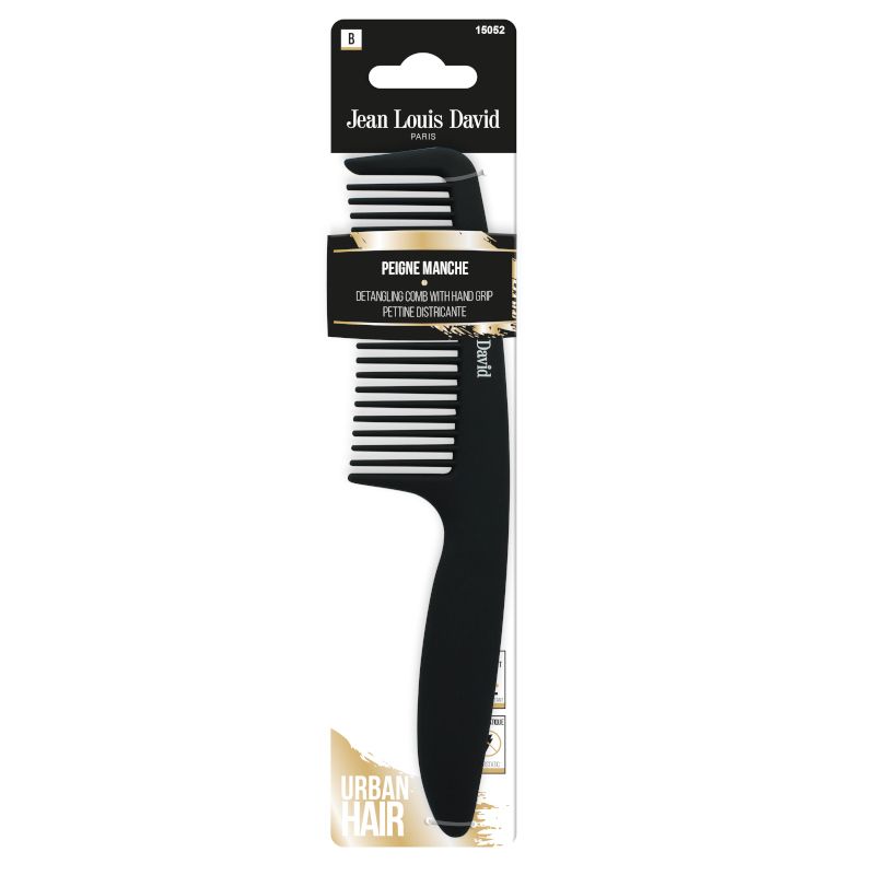 Голям гребен със зъбци за лесно разресване на гъста и къдрава коса.
