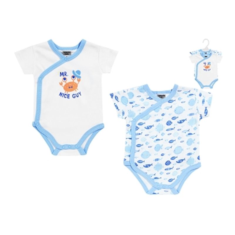 - Комплект от два броя бодита с къс ръкав и прехлупване.
