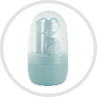 - Пълен комплект грижа за ноктите на бебето, опакован в практичен водоустойчив калъф, който позволява хигиенично съхранение и пренасяне.