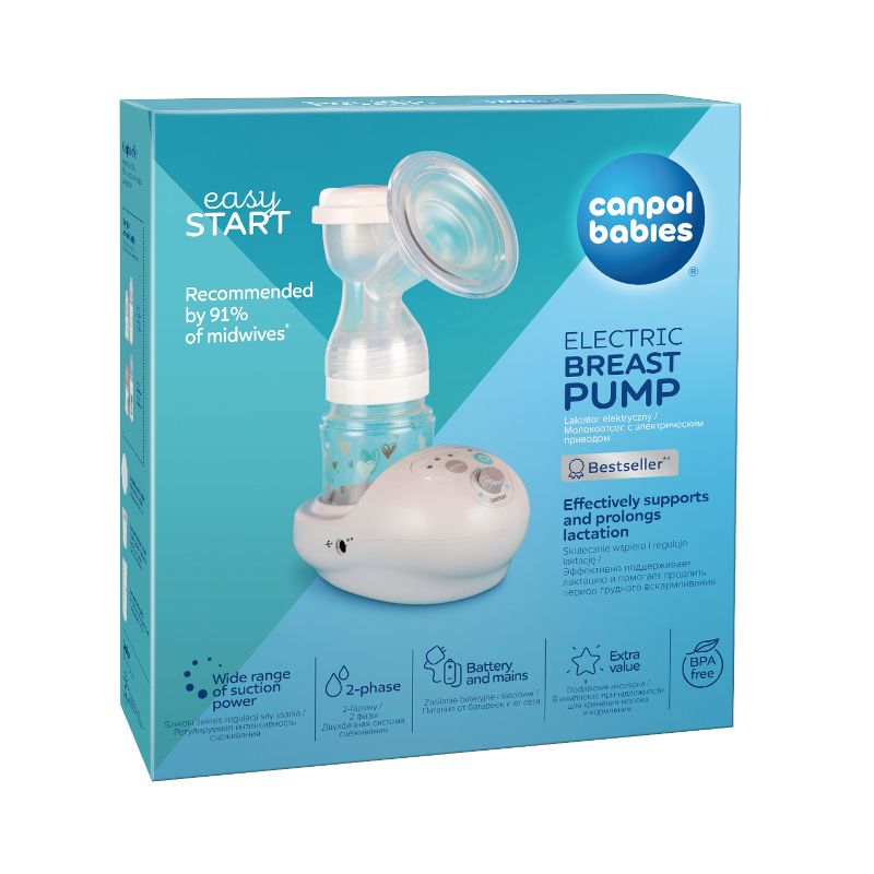 - Помпата за кърма EasyStart е съвместима с всички шишета от асортимента на Canpol babies, благодарение на което можете да регулирате капацитета на шишето според възрастта и нуждите на детето си.