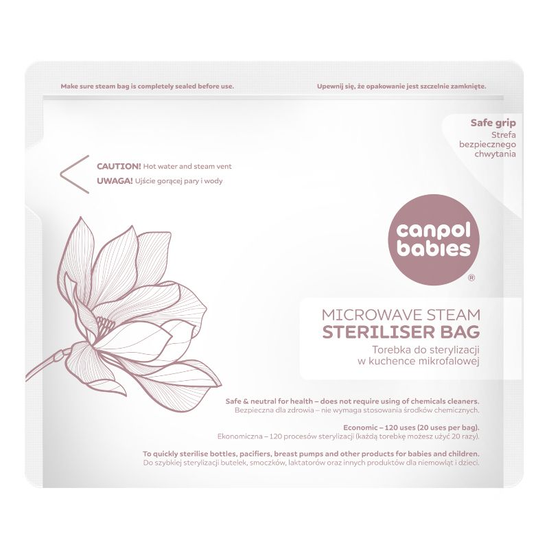 - Пликчетата за стерилизиране в микровълнова фурна Canpol babies са лесен, бърз и безопасен начин за стерилизиране на шишета, залъгалки, части от помпи за кърма и други бебешки и детски продукти.