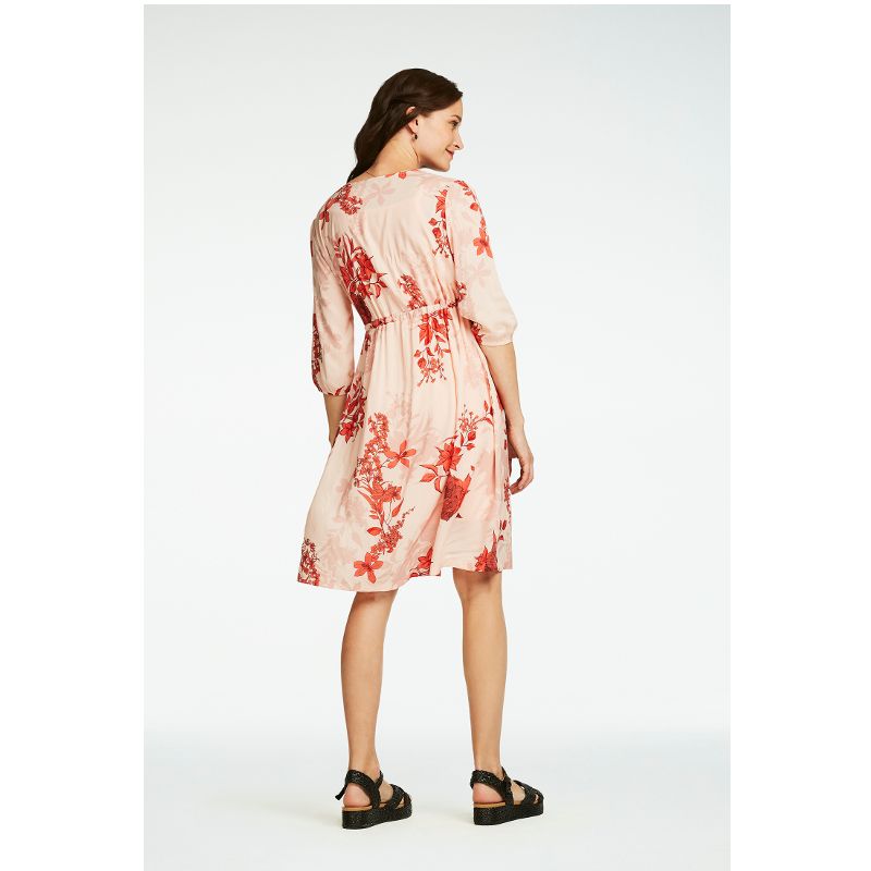 - Моделът е midi, следва силуета на Вашето тяло и има нежен флорален мотив по цялата повърхност.